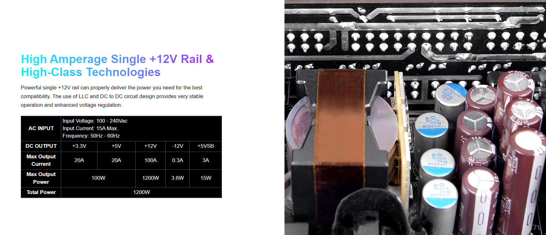 | Max. Output Capacity | 650W | 750W | 850W | 1050W | 1200W |