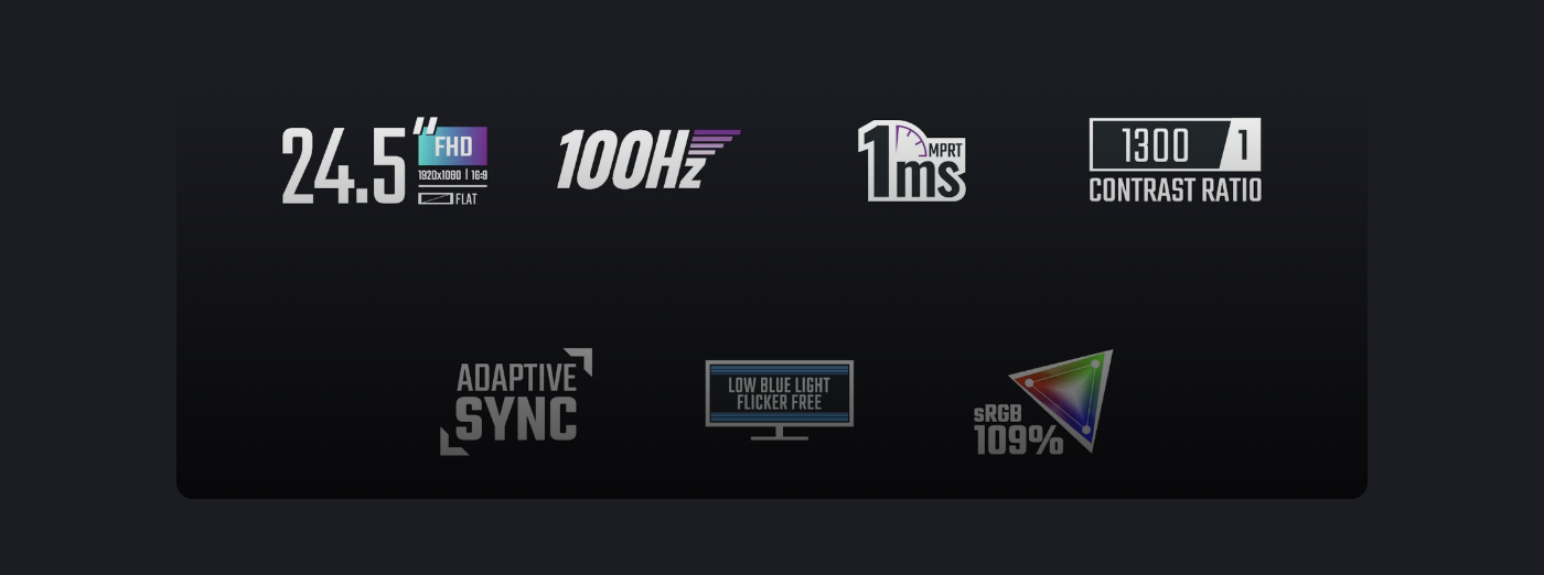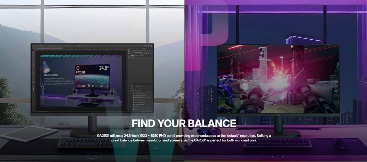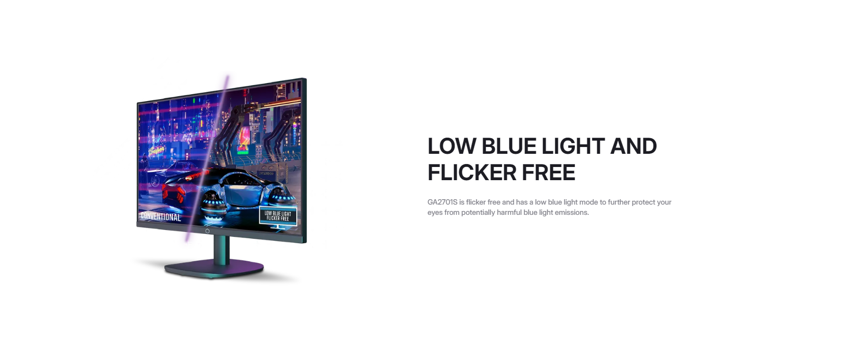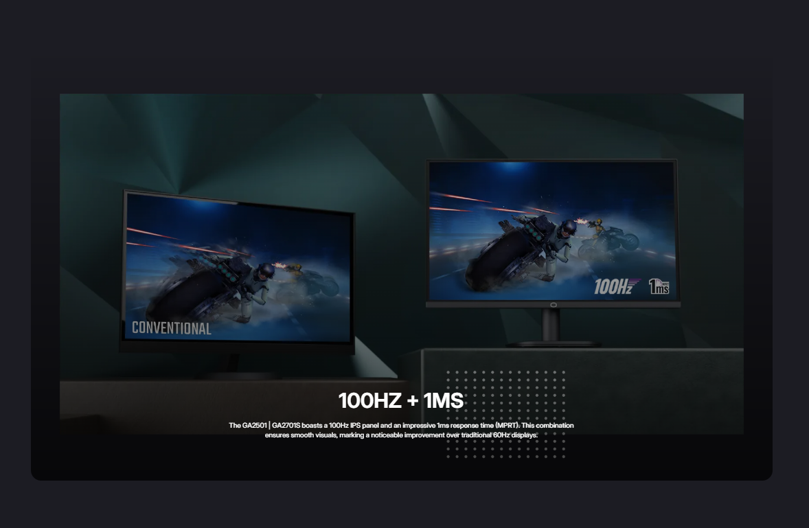 GA2501 | GA2701S is a 24.5-inch / 27-inch FHD monitor with 100Hz refresh rate and Adaptive Sync support. With all the necessary features and specifications, the GA2501 | GA2701S is a value-oriented monitor that provides exceptional performance in both gaming and work applications.