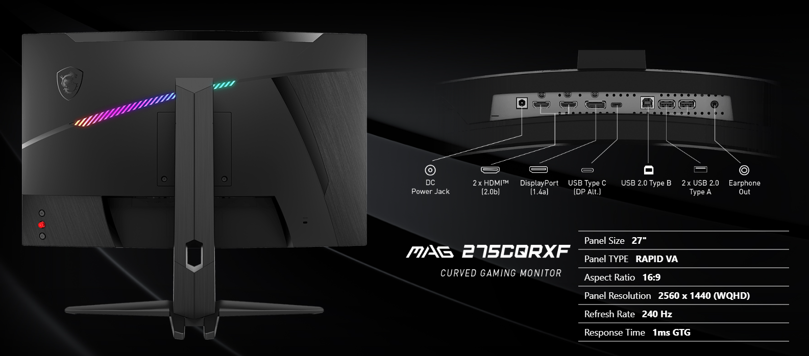 27 Inches MSI MAG 275CQRXF Gaming Curved Monitor