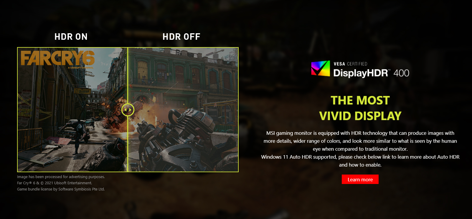 • VESA DisplayHDR 400 – Stunning visuals through contrast and shadow adjustment.