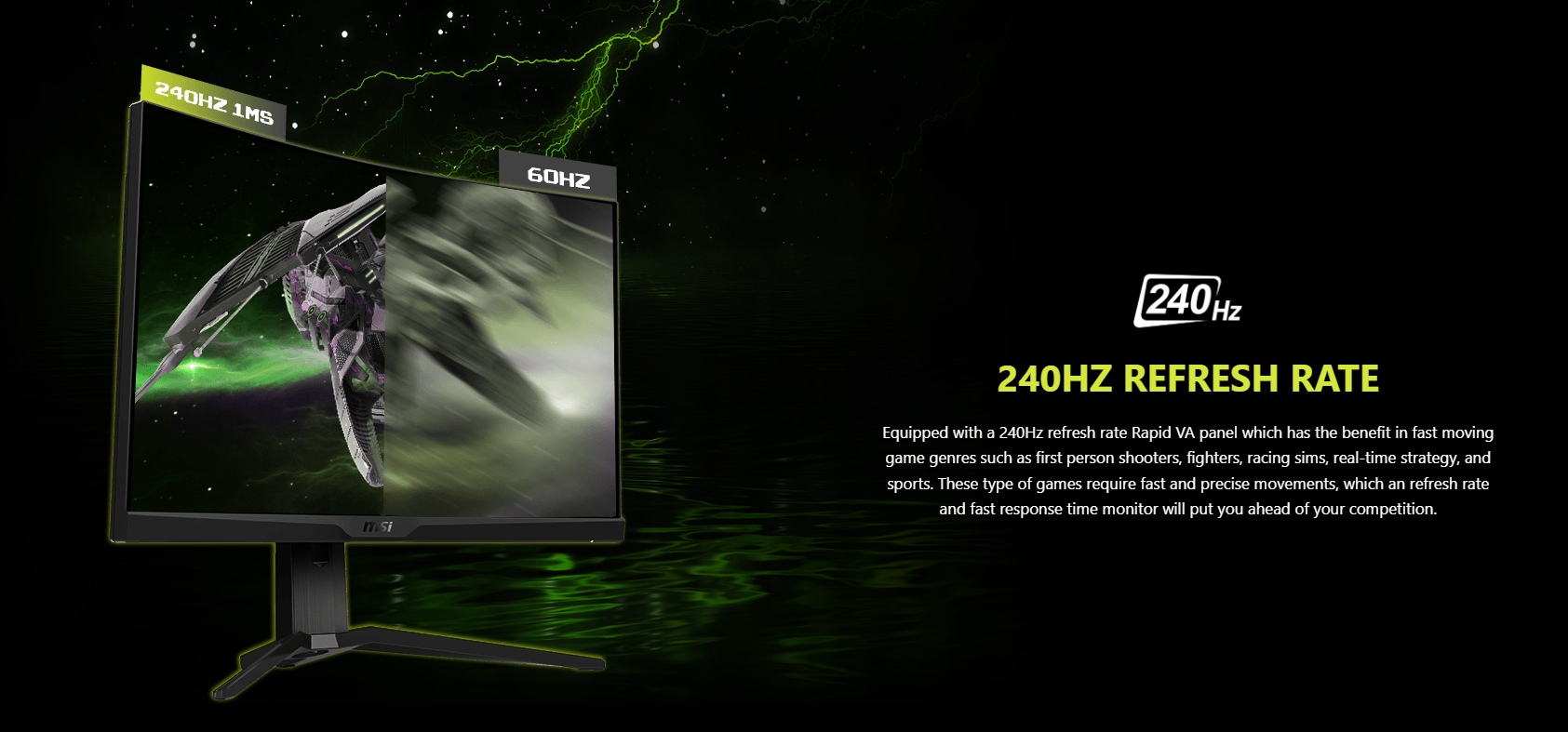 • 240Hz Refresh Rate– Experience smooth gaming with a blazing fast refresh rate and response time.