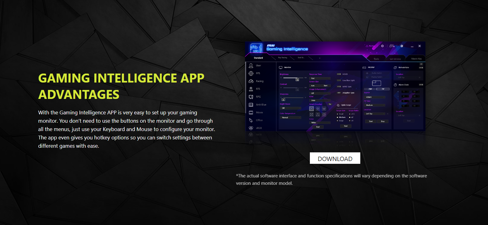 • Gaming Intelligence App – Create the ultimate viewing settings for your game.