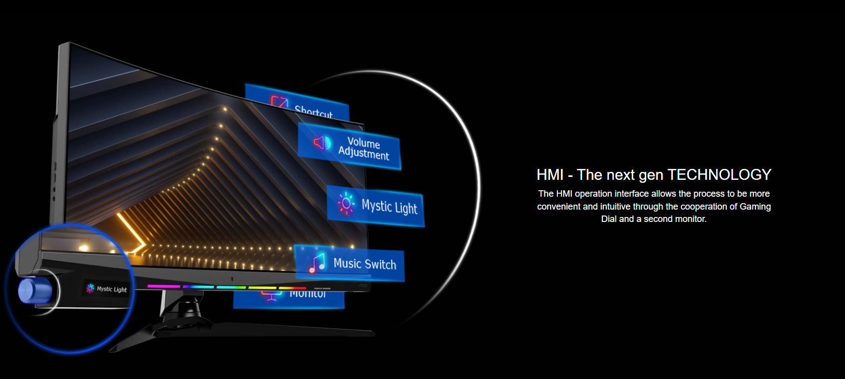 HMI (Human Machine Interface) – choose settings more conveniently and intuitively with the cooperation of the Gaming Dial and a Assistance monitor.