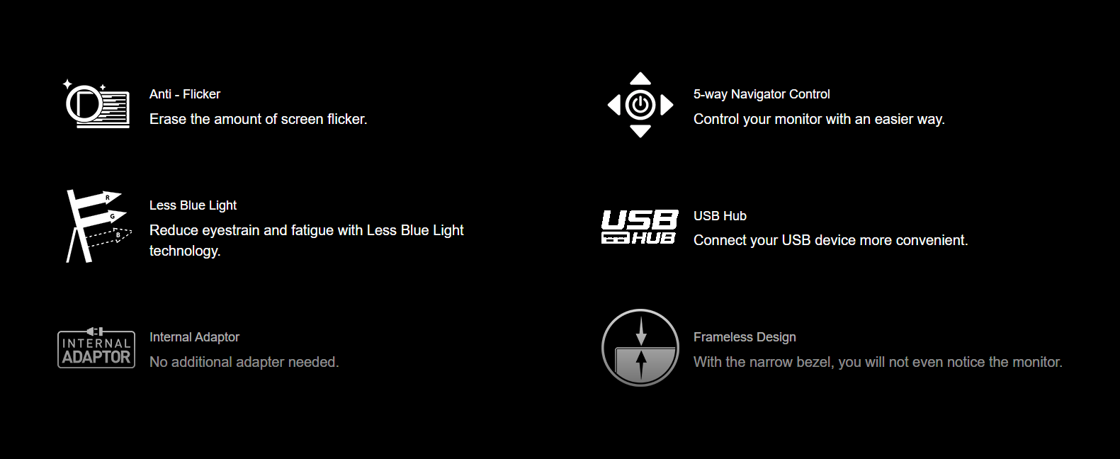 Rapid IPS Panel – Provides 1ms fast response time, optimizes screen colors and brightness.