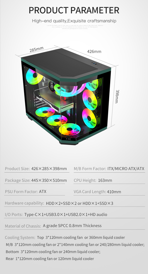 | Side panel &Front panel : | Tempered glass front &left side panel | ||