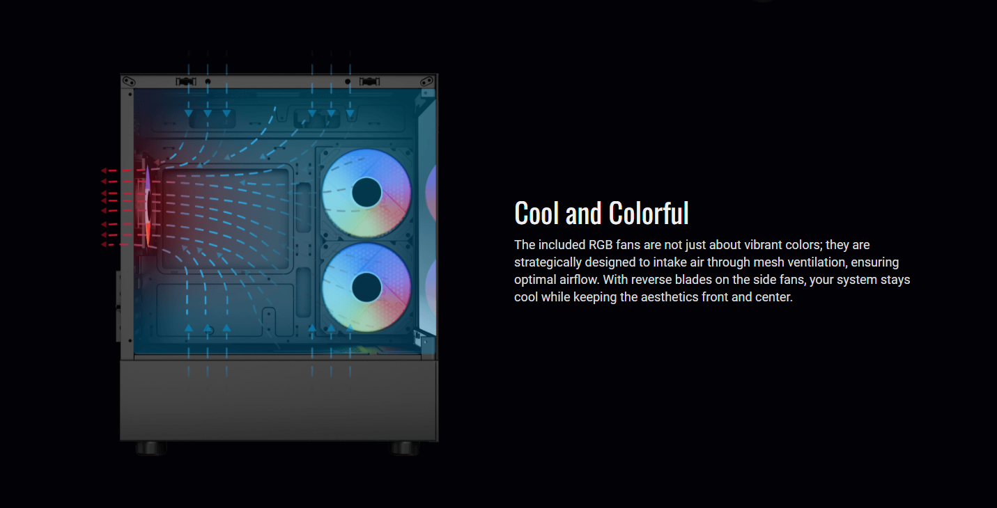 • Included FRGB or ARGB fans intake from mesh ventilation to optimize airflow.