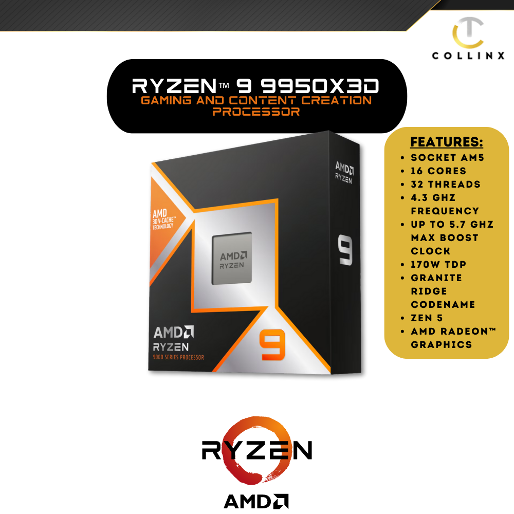 AMD Ryzen™ 9 9950X3D Gaming and Content Creation Processor