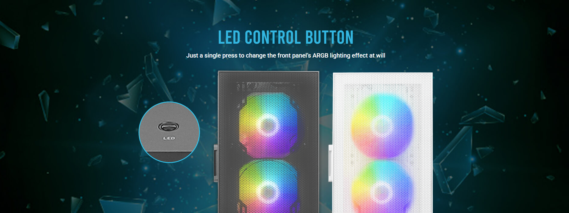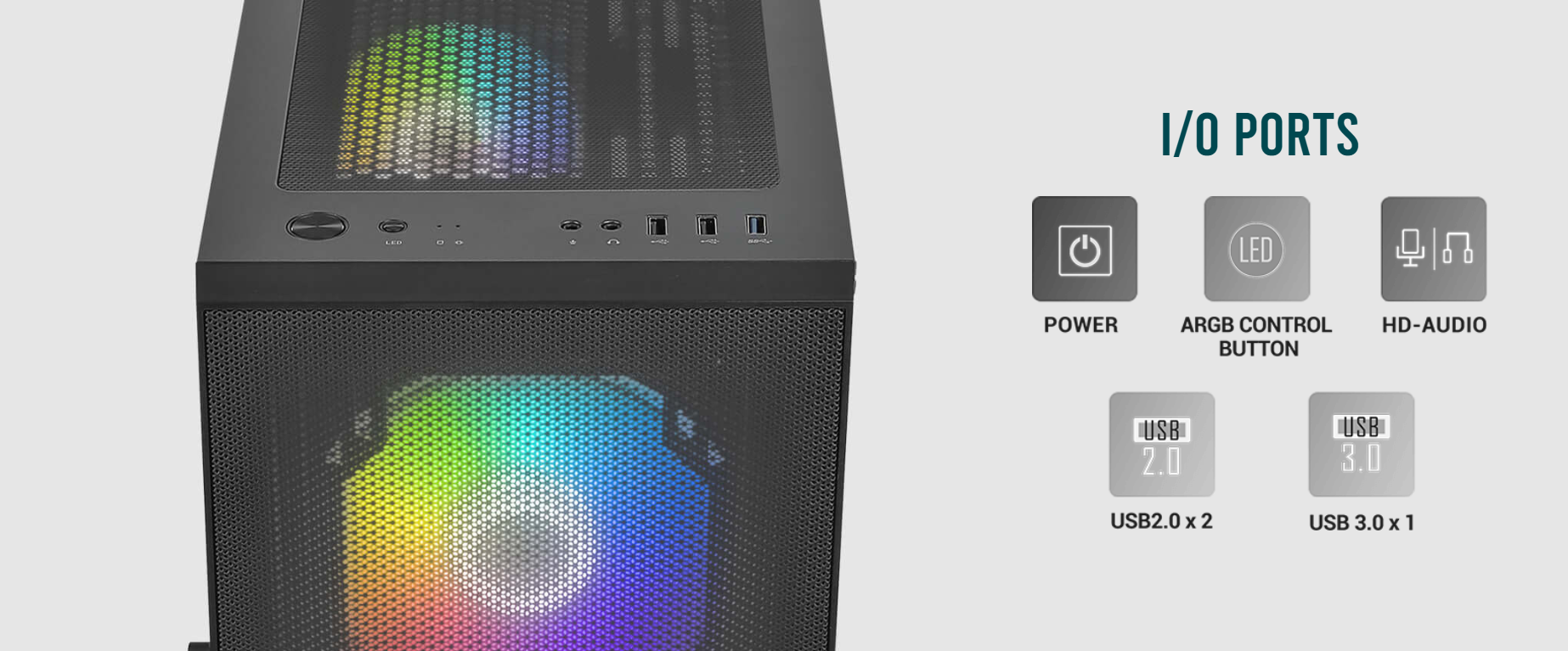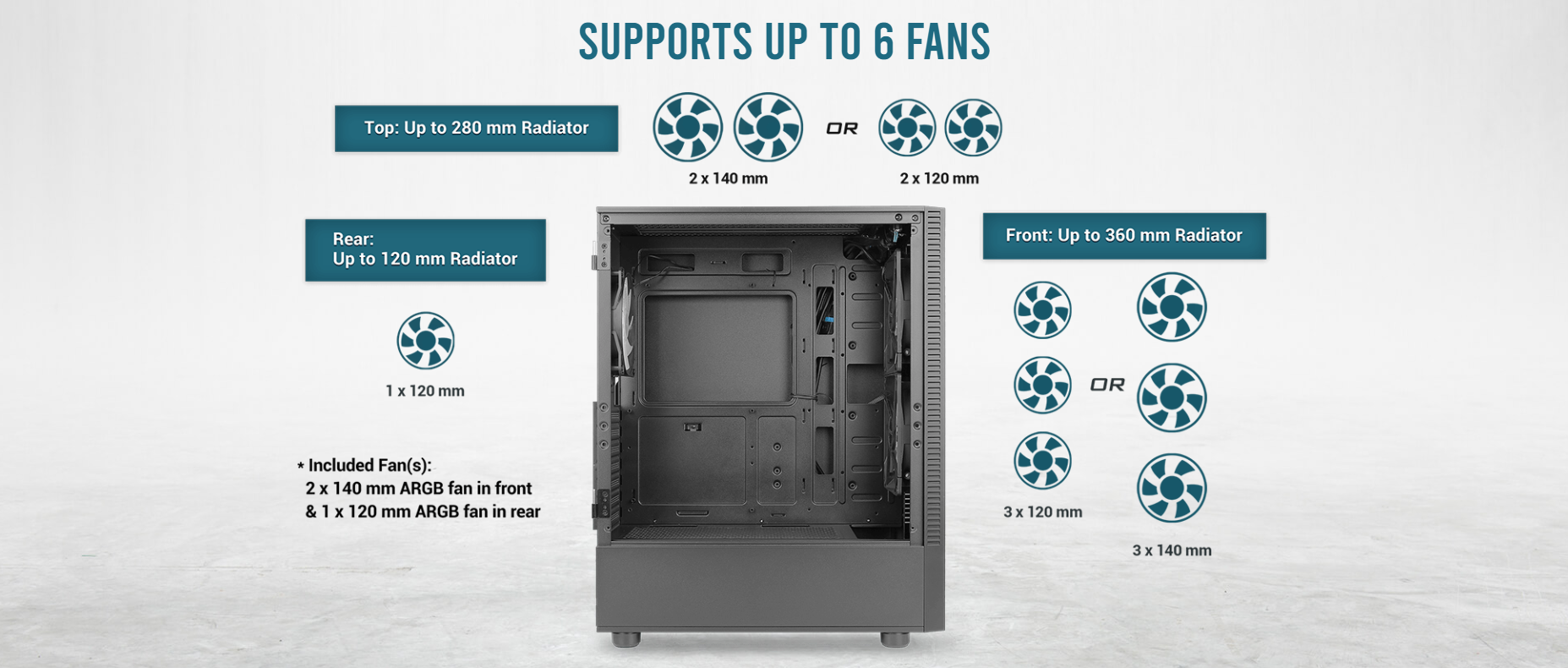 2 x 140 mm ARGB fan in front & 1 x 120 mm ARGB fan in rear |