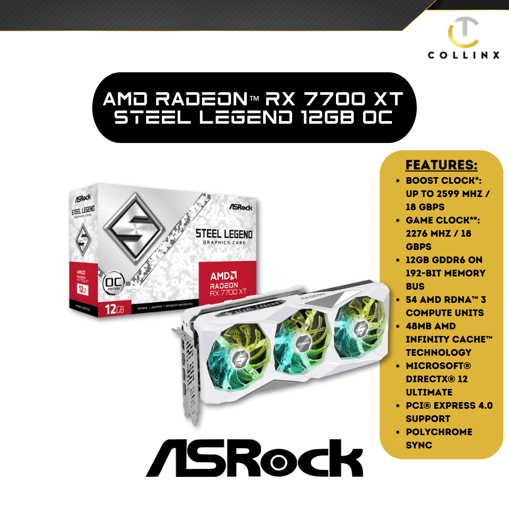 ASROCK AMD Radeon™ RX 7700 XT Steel Legend 12GB OC Graphics Card