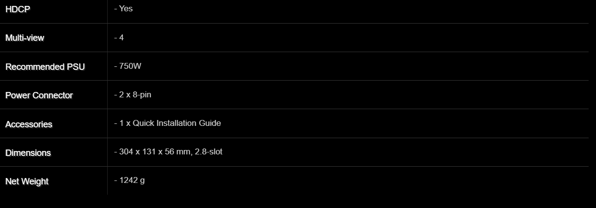 • Clock: GPU / Memory Boost Clock*: Up to 2599 MHz / 18 Gbps Game Clock**: 2276 MHz / 18 Gbps