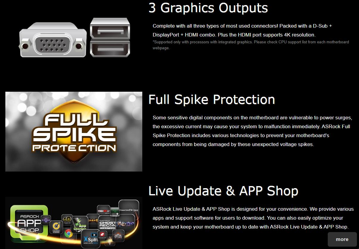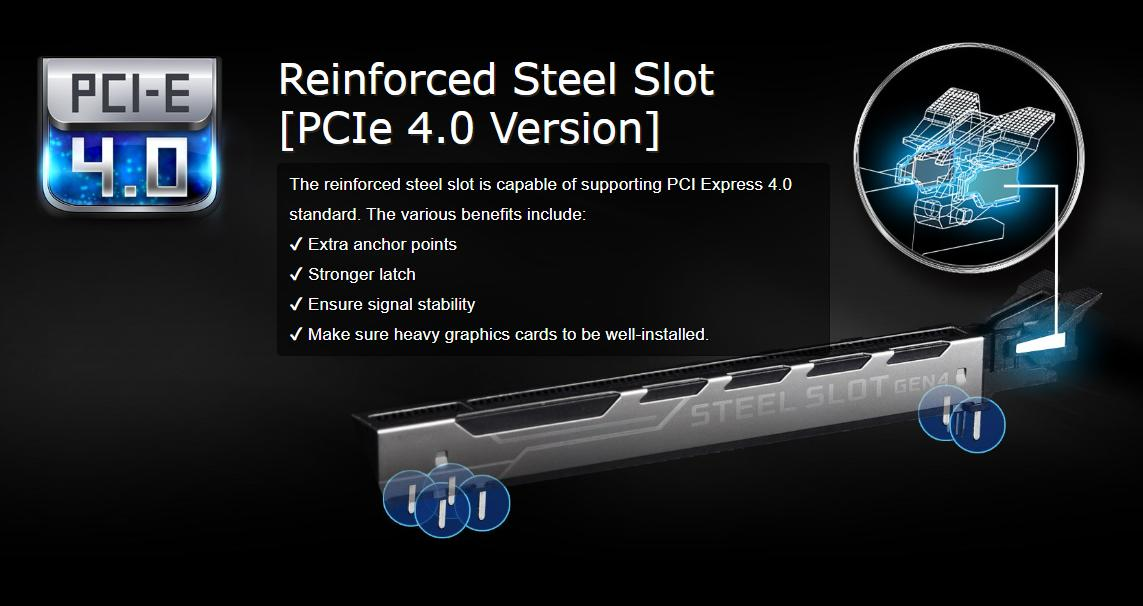 ASRock USB 3.2 Gen2 – ASRock USB 3.2 Gen2 Type-A Port (10 Gb/s) – ASRock USB 3.2 Gen2 Type-C Port (10 Gb/s) ASRock Super Alloy – XXL Aluminum Alloy Heatsink – Premium 50A Power Choke – Sapphire Black PCB – High Density Glass Fabric PCB – 2oz Copper PCB ASRock Steel Slot Gen4 ASRock Full Coverage M.2 Heatsink ASRock Hyper M.2 (PCIe Gen4x4) ASRock POST Status Checker (PSC) ASRock Full Spike Protection (for all USB, Audio, LAN Ports) ASRock Live Update & APP Shop