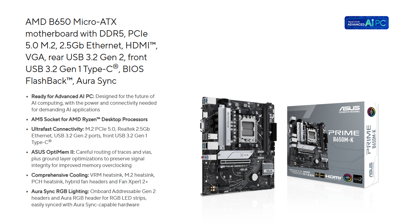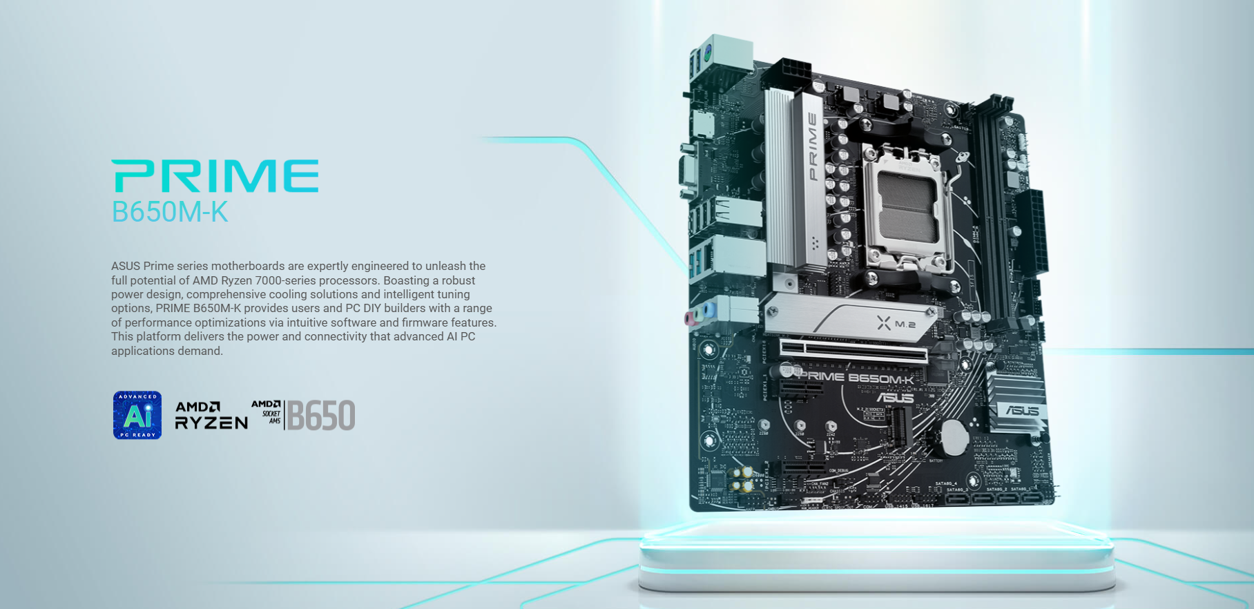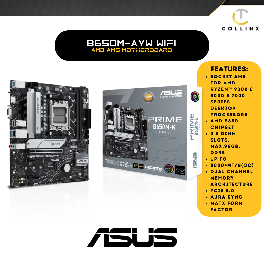 AMD Socket AM5 for AMD Ryzen™ 9000 & 8000 & 7000 Series Desktop Processors* * Refer to www.asus.com for CPU support list.