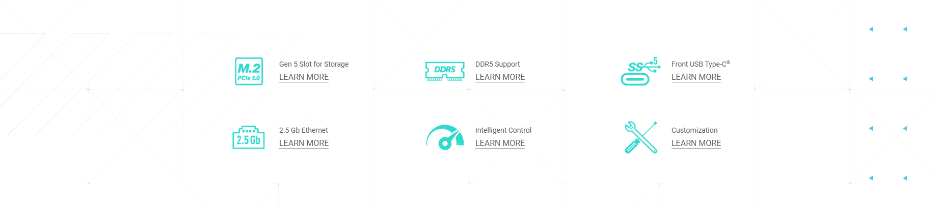 2 x DIMM, Max. 96GB, DDR5 8000+(OC)/7800(OC)/7600(OC)/7200(OC)/7000(OC)/6800(OC)/6600(OC)/6400(OC)/6200(OC)/6000(OC)/5800(OC)/5600(OC)/5400(OC)/5200/5000/4800 ECC and Non-ECC, Un-buffered Memory* Dual Channel Memory Architecture Supports AMD Extended Profiles for Overclocking (EXPO™) OptiMem II * Supported memory types, data rate (speed), and number of DRAM modules vary depending on the CPU and memory configuration, for more information please refer to CPU/Memory Support list under the Support tab of product information site or visit https://www.asus.com/support/. * Non-ECC, Un-buffered DDR5 Memory supports On-Die ECC function.