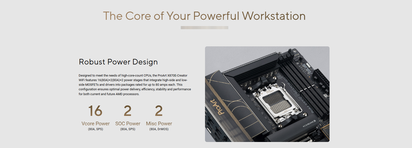 AMD Socket AM5 for AMD Ryzen™ 9000 & 8000 & 7000 Series Desktop Processors* * Refer to www.asus.com for CPU support list.