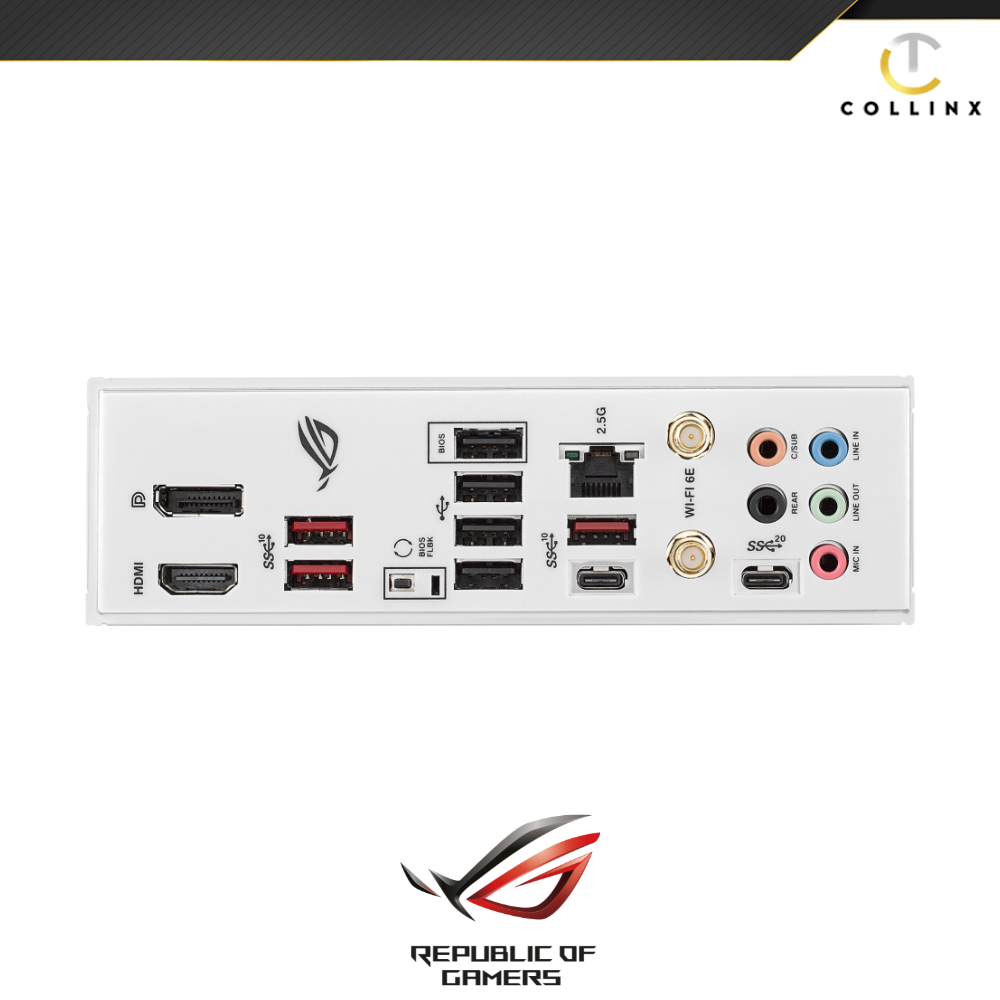 1 x USB 3.2 Gen 2×2 port (1 x USB Type-C®) 4 x USB 3.2 Gen 2 ports (3 x Type-A + 1 x USB Type-C®) 4 x USB 2.0 ports (4 x Type-A) 1 x DisplayPort 1 x HDMI® port 1 x Wi-Fi Module 1 x Intel® 2.5Gb Ethernet port 5 x Audio jacks  1 x BIOS FlashBack™  button