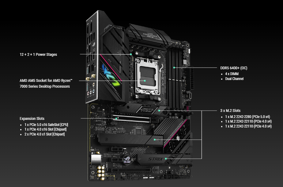 AM5 Socket for AMD Ryzen™ 9000& 8000 & 7000 Desktop Processorss* * Refer to www.asus.com for CPU support list.