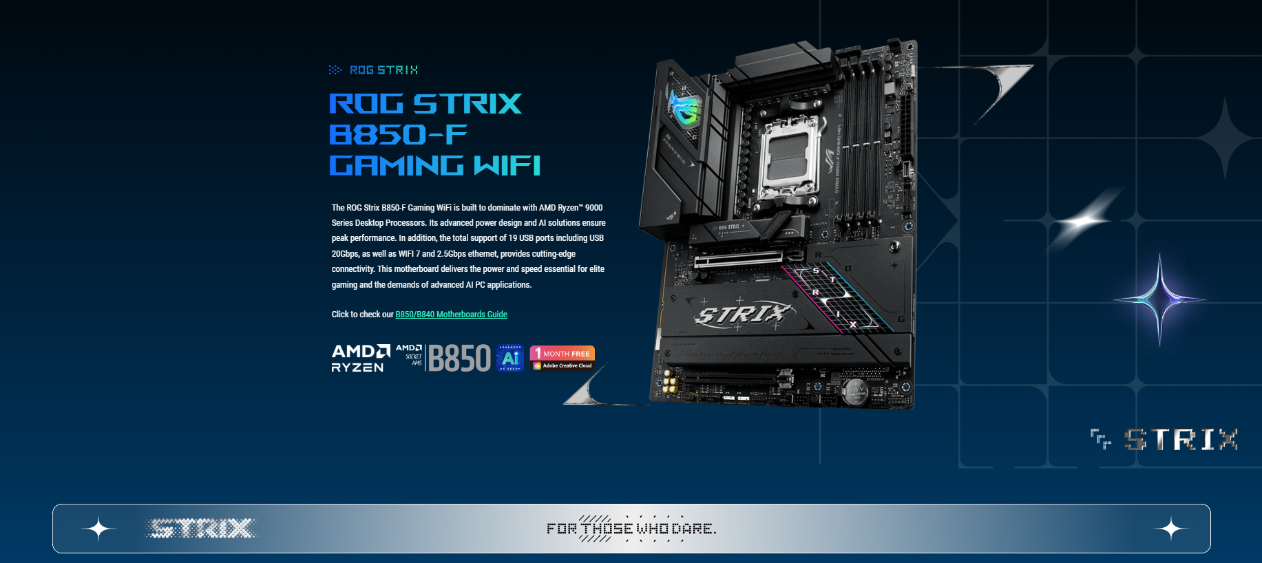 AMD Socket AM5 for AMD Ryzen™ 9000 & 8000 & 7000 Series Desktop Processors* * Refer to https://www.asus.com/support/download-center/ for CPU support list.