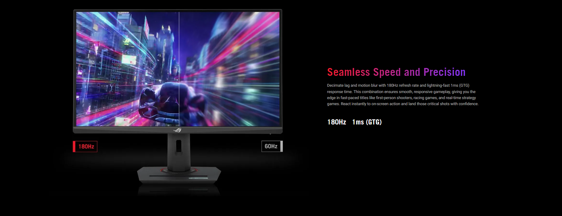 ASUS Fast IPS technology enables a 1ms response time (GTG) for sharp gaming visuals with high frame rates
