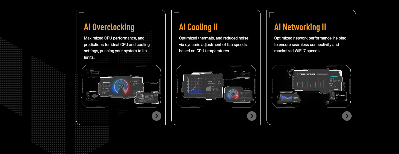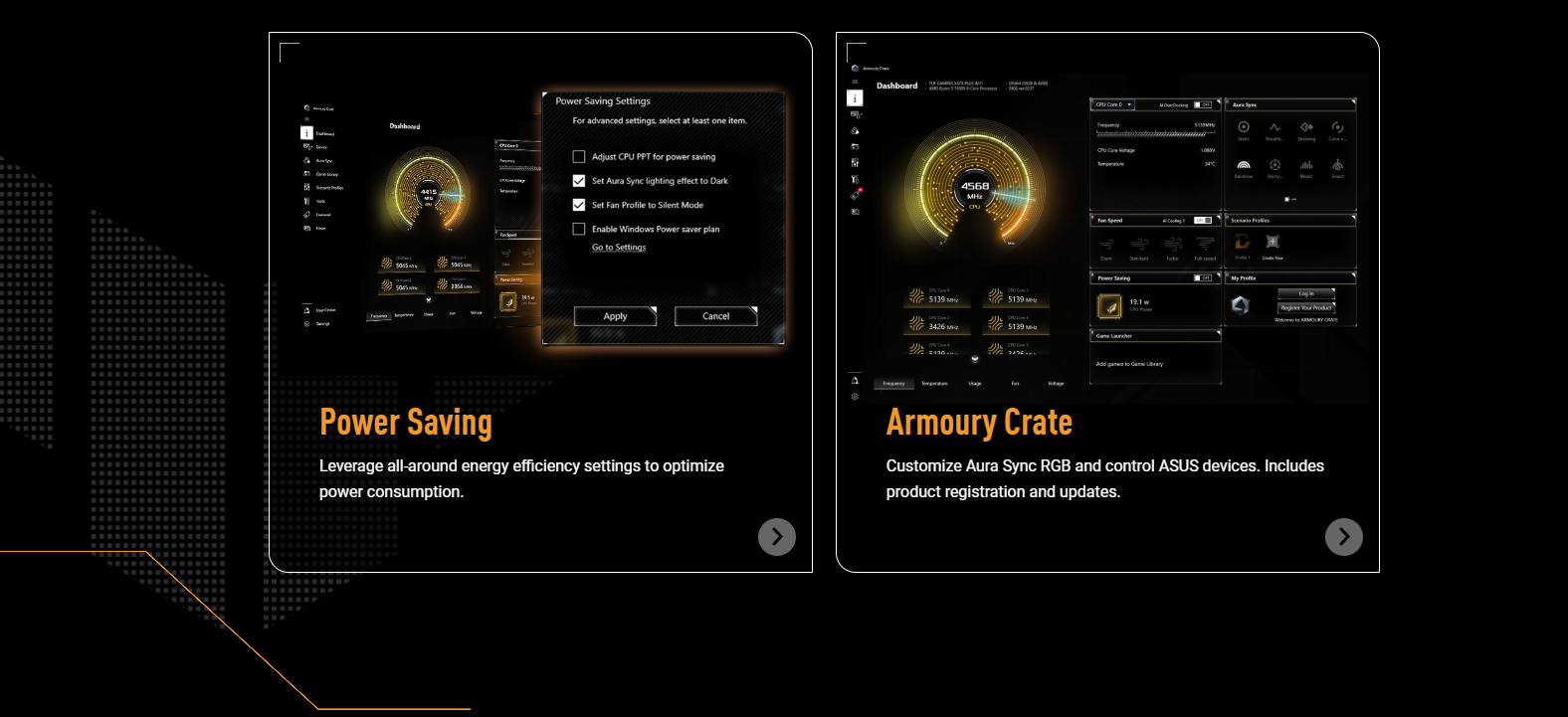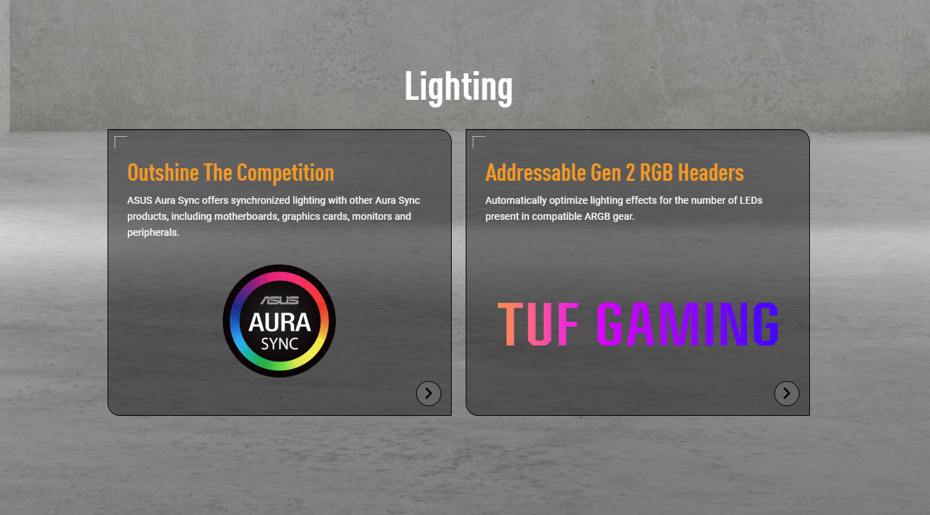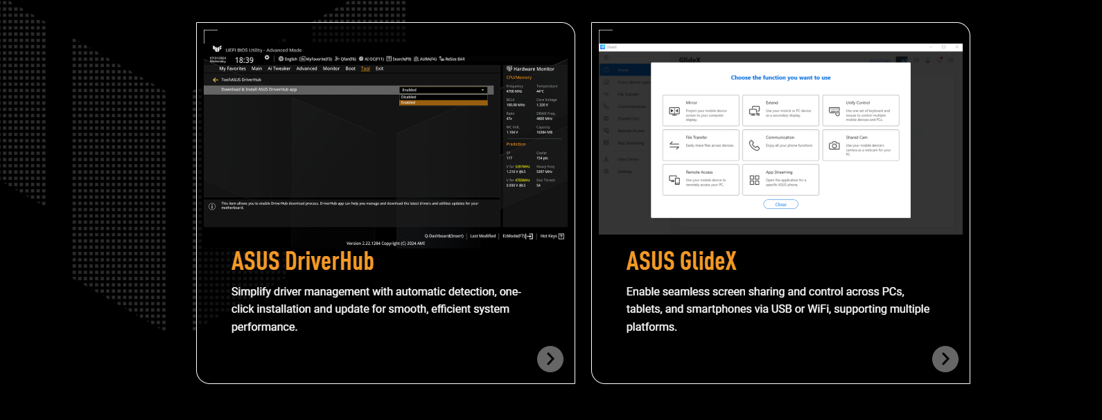 ASUS Exclusive Software Armoury Crate – Aura Creator – Aura Sync – Fan Xpert 4 (with AI Cooling II) – Power Saving ASUS DriverHub ASUS GlideX USB Wattage Watcher TurboV Core TUF GAMING CPU-Z DTS Audio Processing Norton 360 for Gamers (60 Days Free Trial) WinRAR (40 Days Free Trial) UEFI BIOS AI Overclocking Guide ASUS EZ DIY – ASUS CrashFree BIOS 3 – ASUS EZ Flash 3 – ASUS UEFI BIOS EZ Mode – ASUS MyHotkey