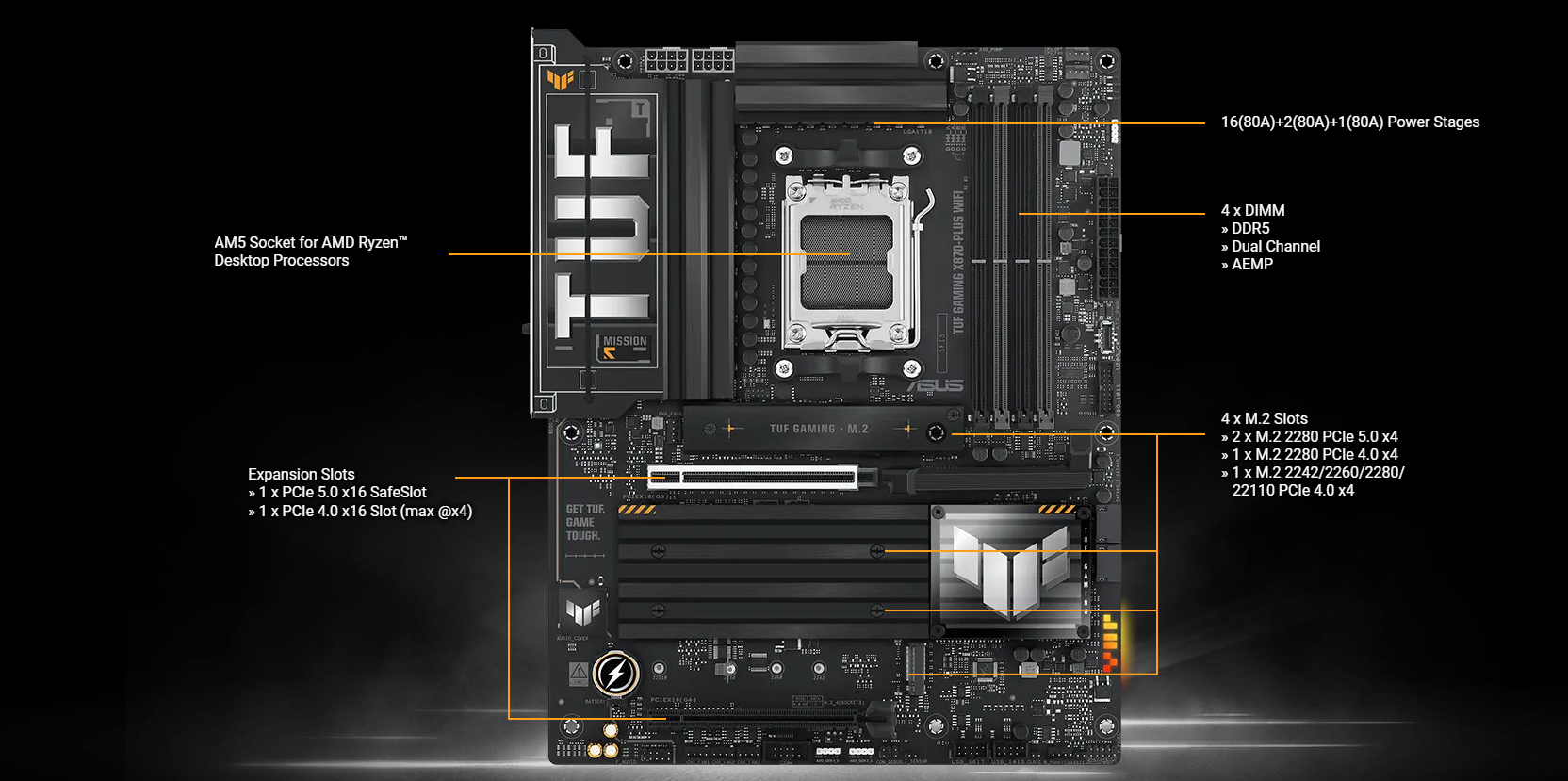 AMD Socket AM5 for AMD Ryzen™ 9000 & 8000 & 7000 Series Desktop Processors* * Refer to https://www.asus.com/support/download-center/ for CPU support list.