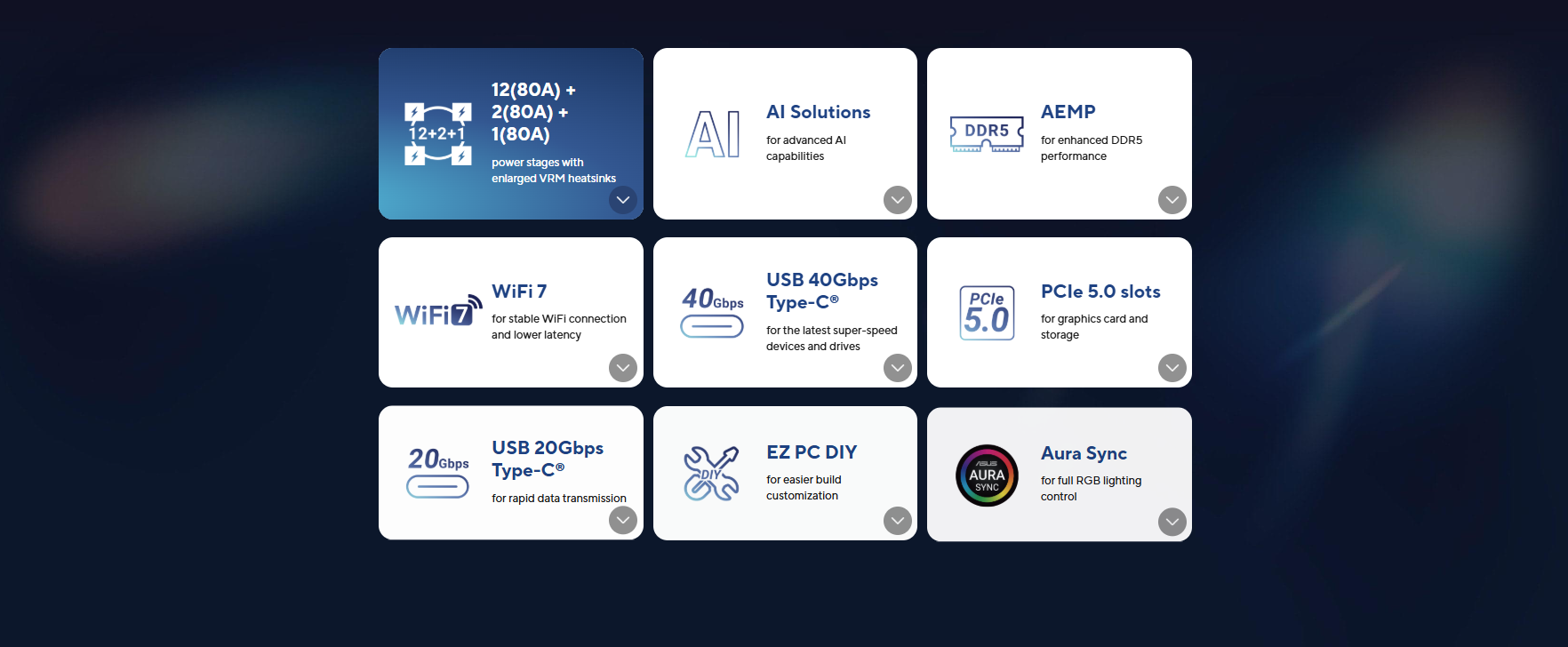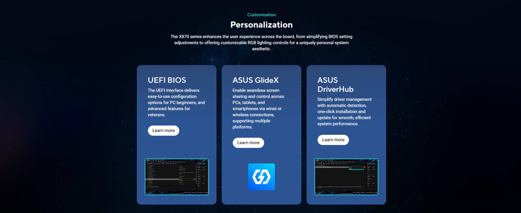 ASUS Exclusive Software Armoury Crate – Aura Creator – Aura Sync – Fan Xpert 4 with AI Cooling II ASUS AI Advisor ASUS DriverHub ASUS GlideX TurboV Core ASUS CPU-Z Norton 360 Deluxe (60 Days Free Trial) WinRAR (40 Days Free Trial) UEFI BIOS ASUS EZ DIY – ASUS CrashFree BIOS 3 – ASUS EZ Flash 3 – ASUS UEFI BIOS EZ Mode – ASUS MyHotkey