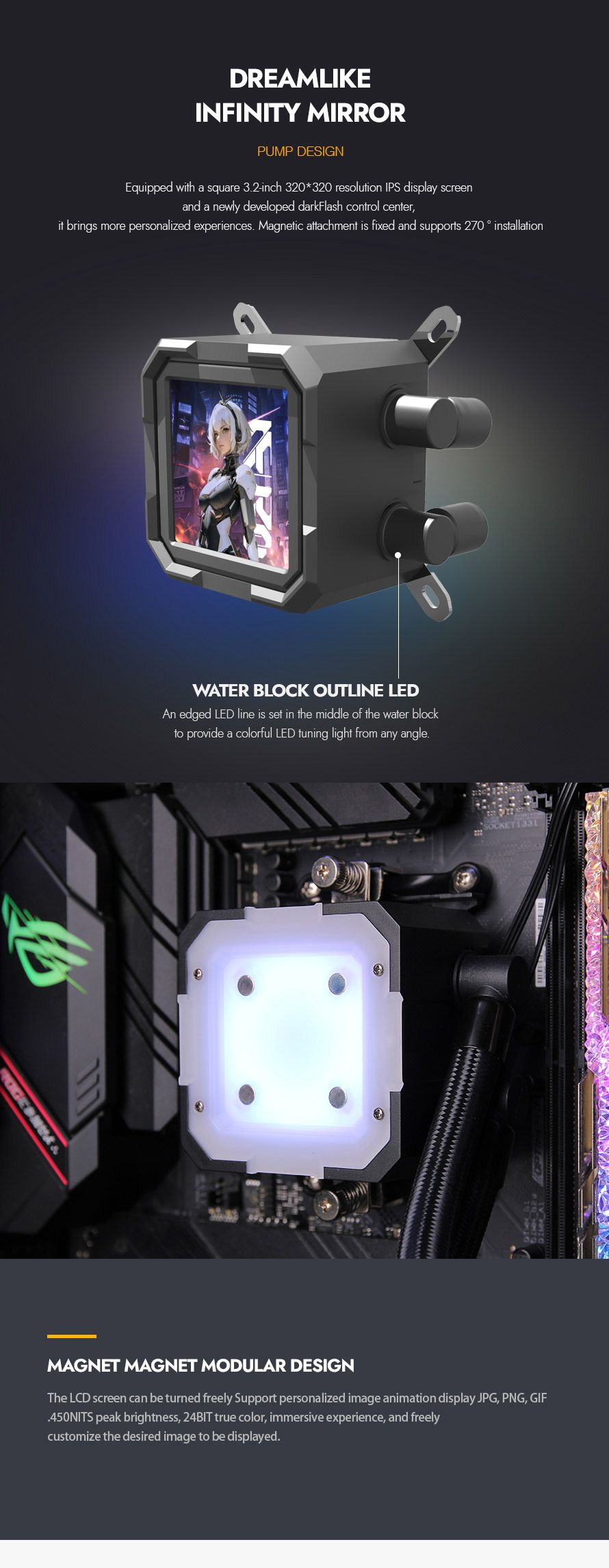 320*320 resolution IPS LCD square screen water-cooled display