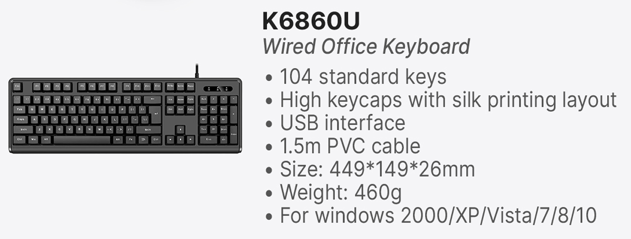 Delux K6860U Wired Office Keyboard | 104 Standard Keys | High Keycaps With Silk Printing Layout | USB Interface | 1.5m PVC Cable | Ultra Slim & Lightweight | Stylish and Compact | Widely Compatible | Best for Home/Office Use | CCT PC ESSENTIALS