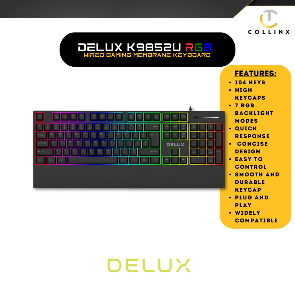 DELUX K9852U Wired Gaming Non Mechanical Keyboard