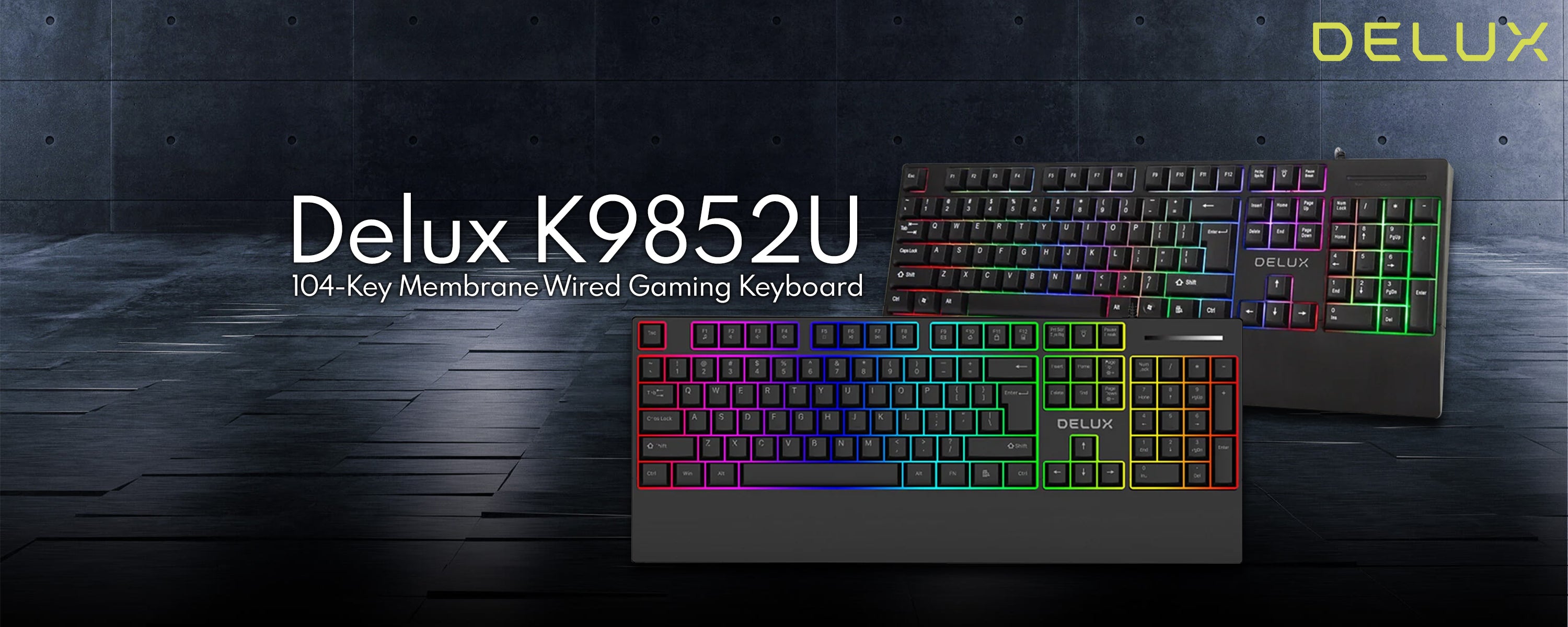 Delux K9852U 104-Keys Membrane Wired Gaming Keyboard