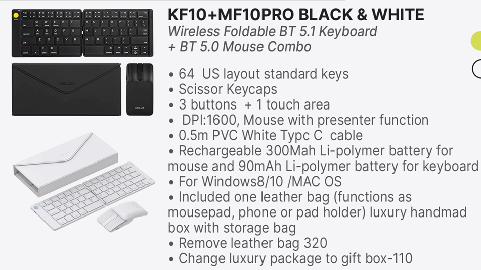 Delux KF10+MF10PRO Wireless BT Keyboard and Mouse Pocket Combo