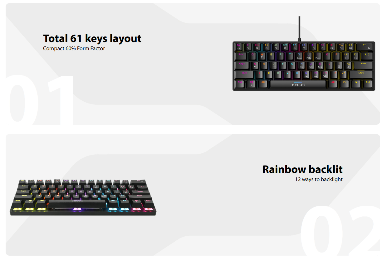 Delux KM36U 61-Keys Wired Mechanical Gaming Keyboard (Clicky Blue Switch)