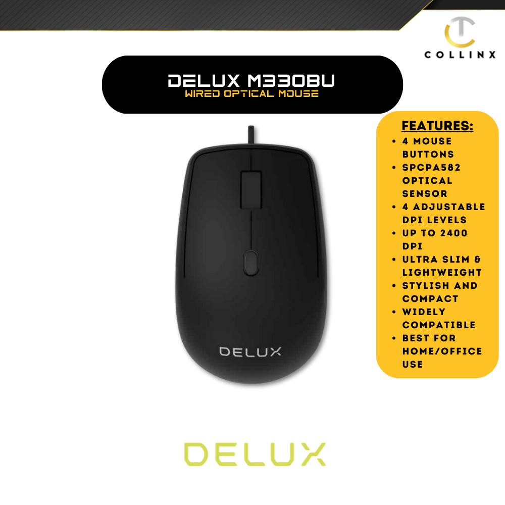 Delux M330BU Wired Optical Mouse | 4 Mouse buttons | SPCPA582 Optical Sensor | 4 Adjustable DPI Levels, Up to 2400 DPI | Ultra Slim & Lightweight | Stylish and Compact | Widely Compatible | Best for Home/Office Use