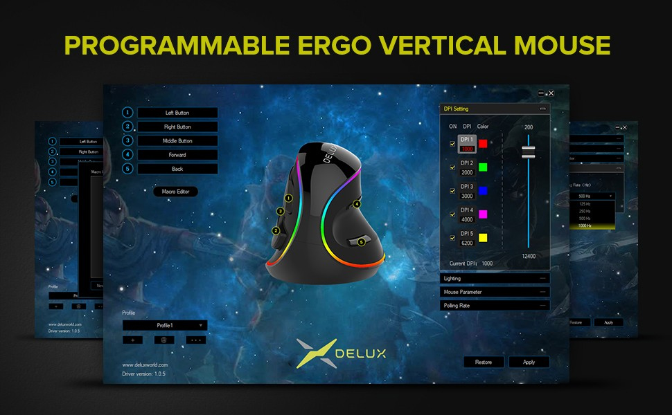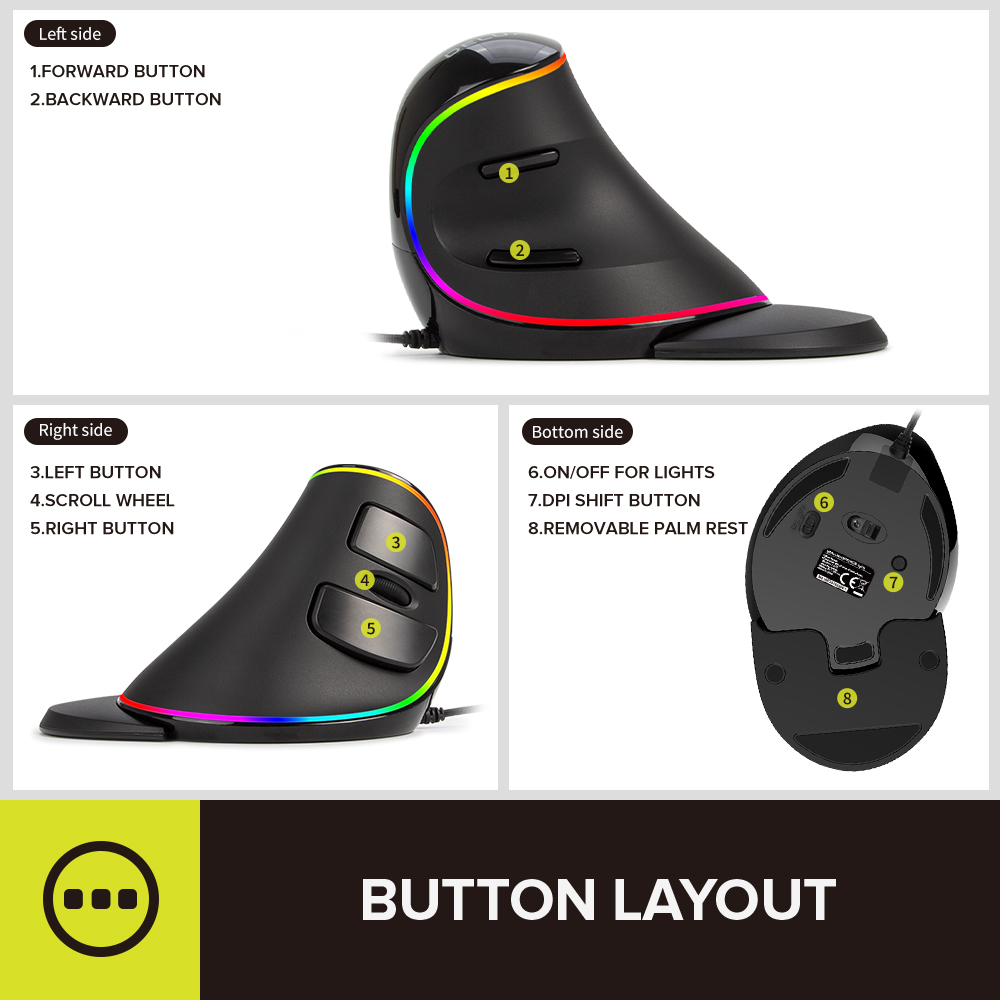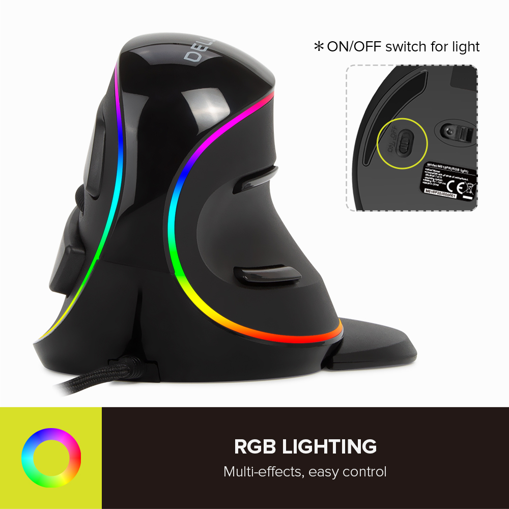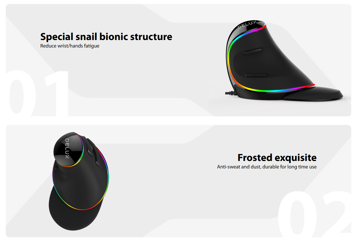 Delux M618PLUS Wired Optical Ergonomic Vertical Mouse RGB Snail Bionic Structure with 4000 DPI, 6 Buttons, USB Interface for Windows XP/7/8/10