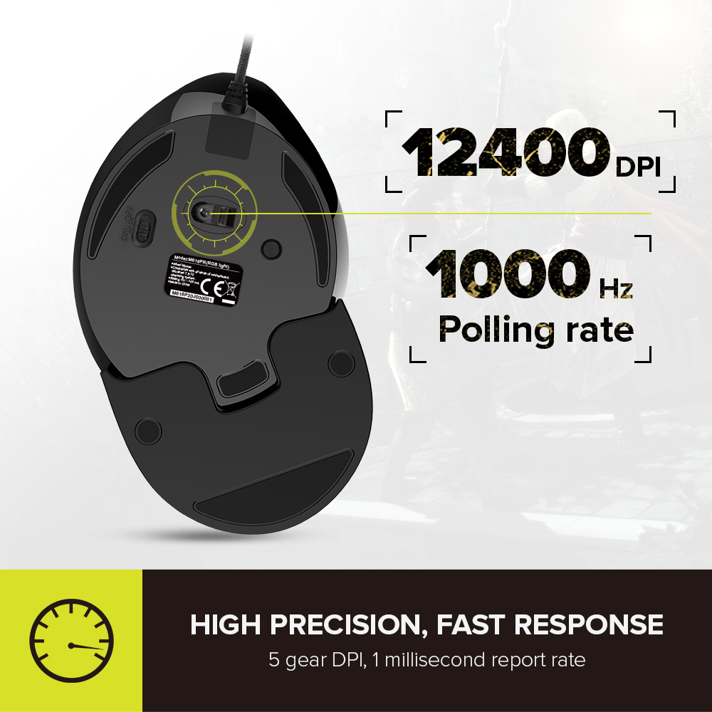 Wired Optical Ergonomic Mouse Special Snail Bionic Structure Optical sensor 6 Buttons DPI: 800/1200(default)/1600/2400/4000 RGB color Rubberized finish USB interface For windows XP/7/8/10 Dimension: 130.6*68.9*42.5mm Weight: 210g ACC: 10g Polling Rate: 500 Interface: USB Sensor: PAW 3212