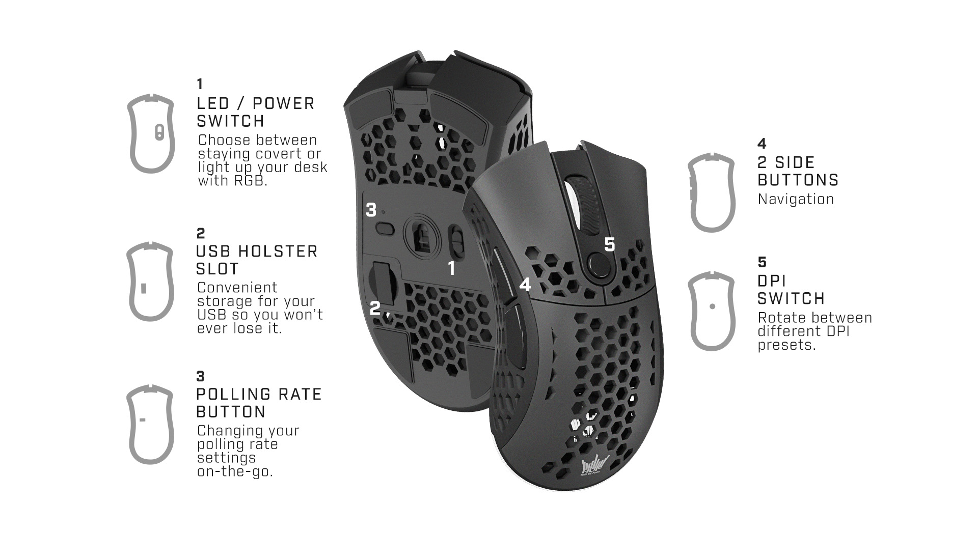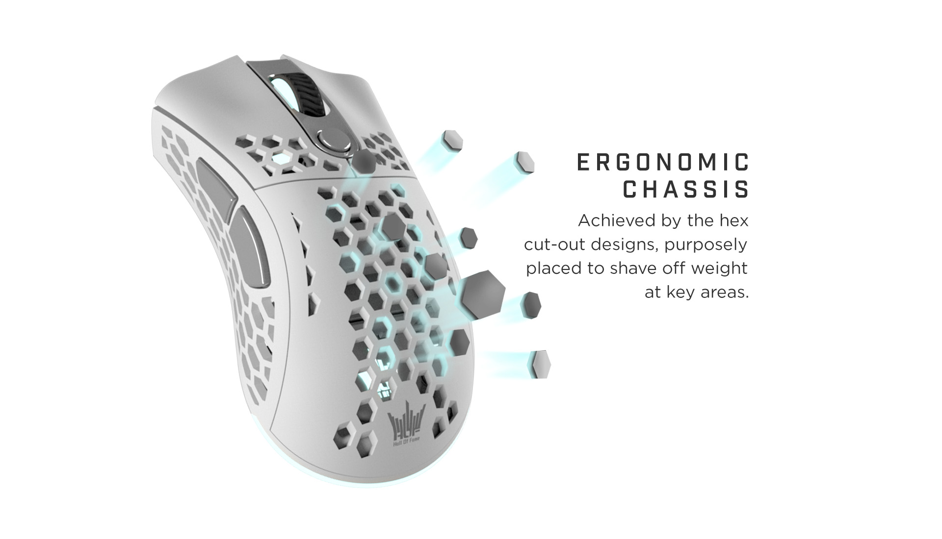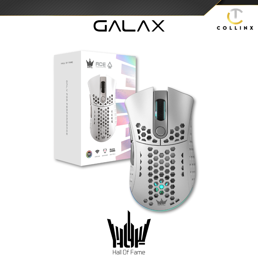 GALAX HOF ACE M2 Gaming Mouse | Wireless (2.4GHz), USB Type-C | PixArt Optical Sensor | 38,000 DPI (by software) | 400 IPS | 6 programmable macro buttons + 2 switches | ARGB Backlighting | 1.8m braided fiber cable | Up to 90 hours