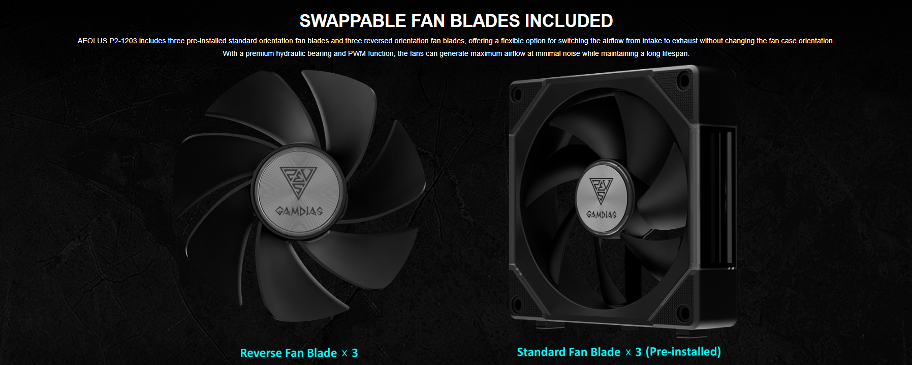• Swappable Fan Blades (Reverse Fan Blades Included)