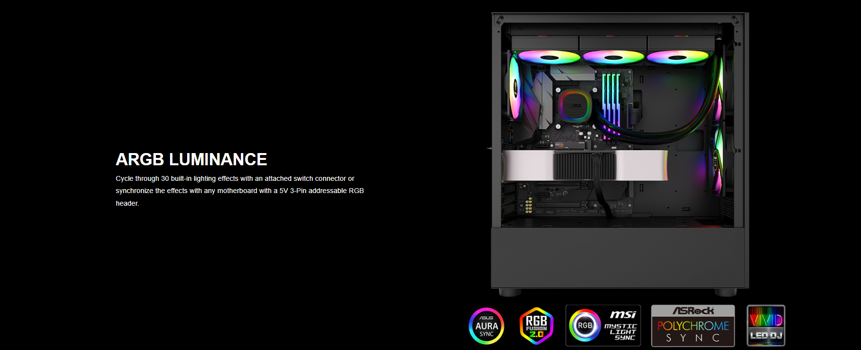 • 30 Built-in Lighting Effects and Motherboard Sync ARGB