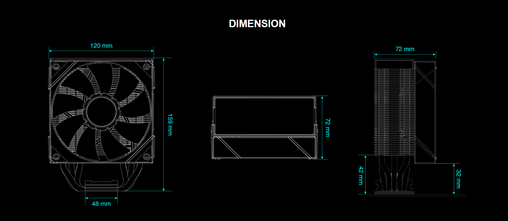 AirCoolerPWM 120 mm Fan:1 Single Heatsink with 5 Heatpipes:1 Thermal Grease:1 Universal Socket Mounting Kits