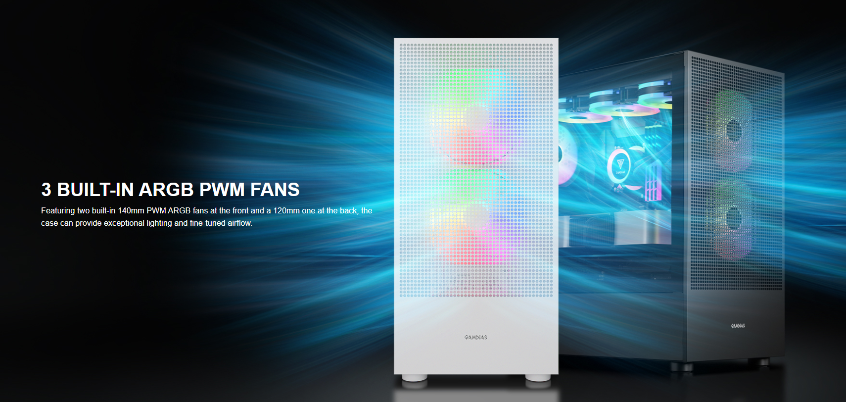 Pre-installed FansFront: 2 x 140mm ARGB PWM Fans / Rear: 1 x 120mm ARGB PWM Fan