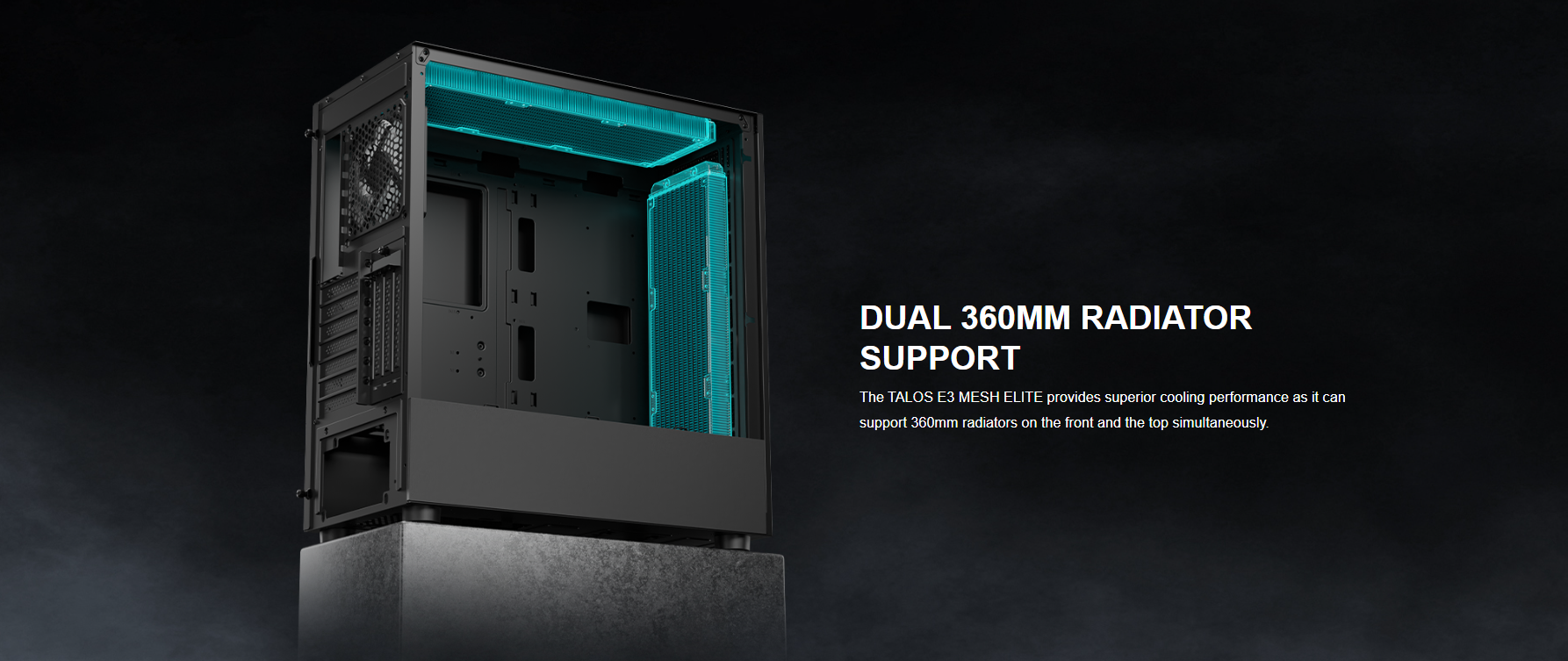 Fan SupportTop: 3 x 120mm、2 x 140mm / Front: 3 x 120mm 、2 x 140mm / Rear: 1 x 120mm、1 x140mm