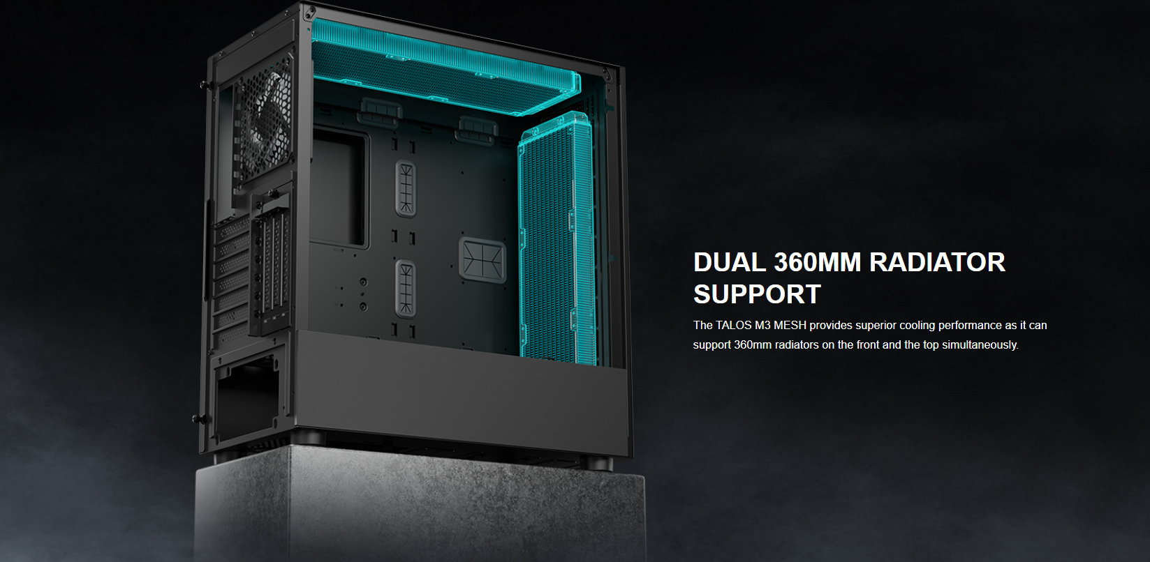 • Supports Dual 360mm Radiators