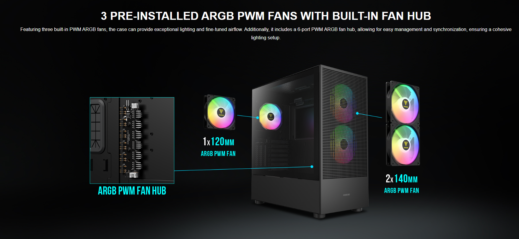 • 3 Built-in PWM ARGB Fans