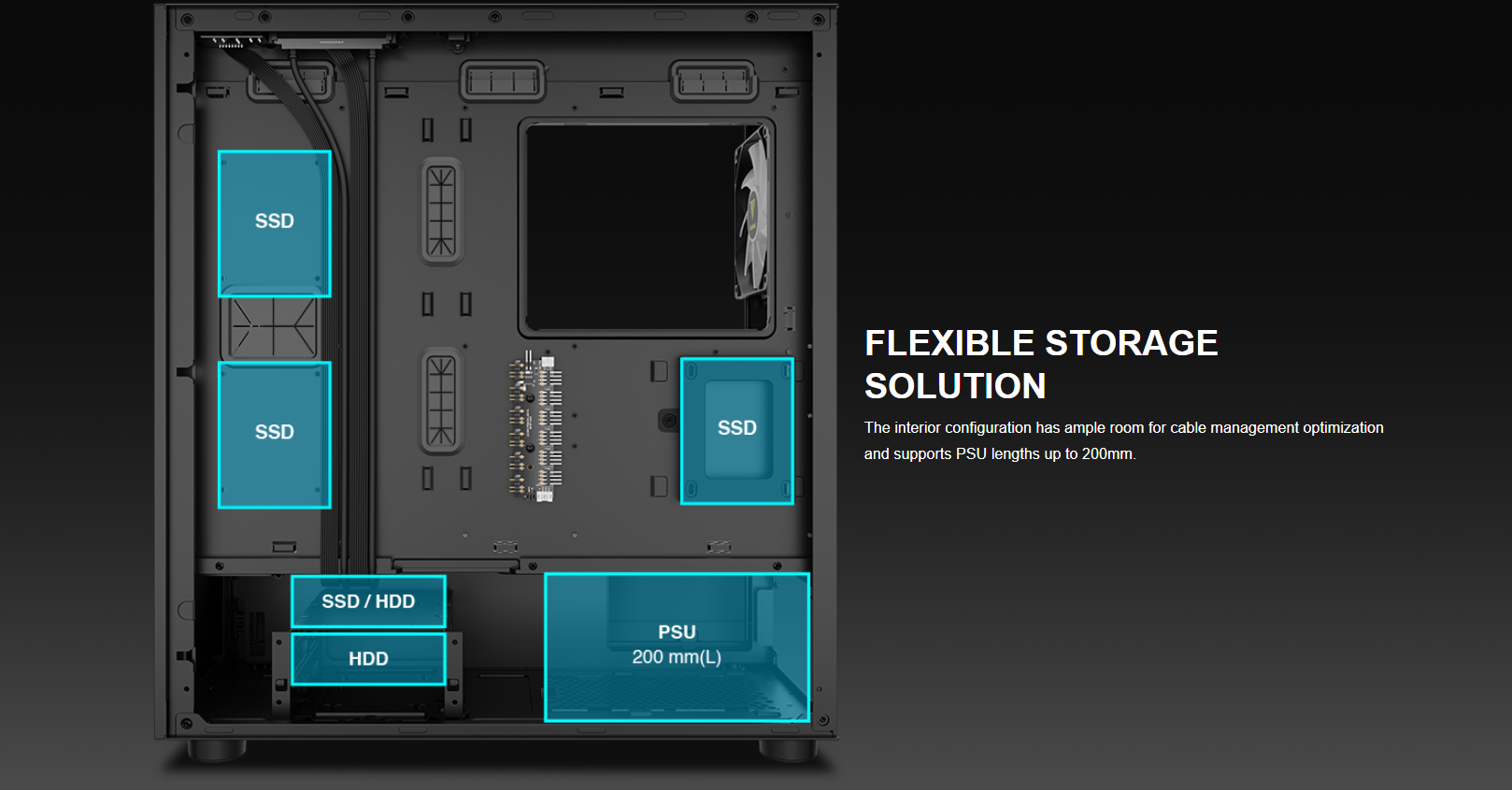 • Accommodates PSU with Length up to 200mm
