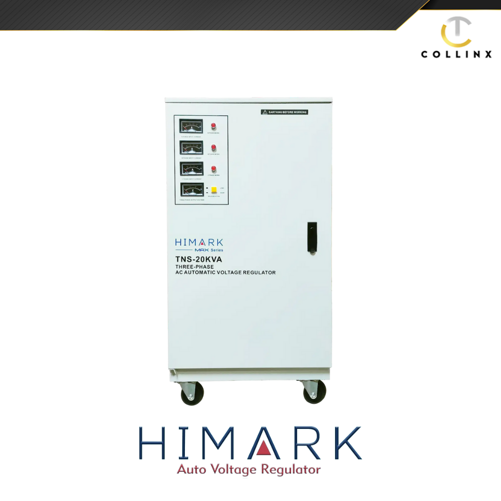 HIMARK TNS-20000VA 380V AVR THREE PHASE TNS SERIES | 100% Pure Copper | Servo Motor Control System | MCB Type | Low Volt & Over Volt Protection | Short Circuit & Overload Protection | Time Delay 3-5 Minutes | Terminal Binding | Collinx Computer