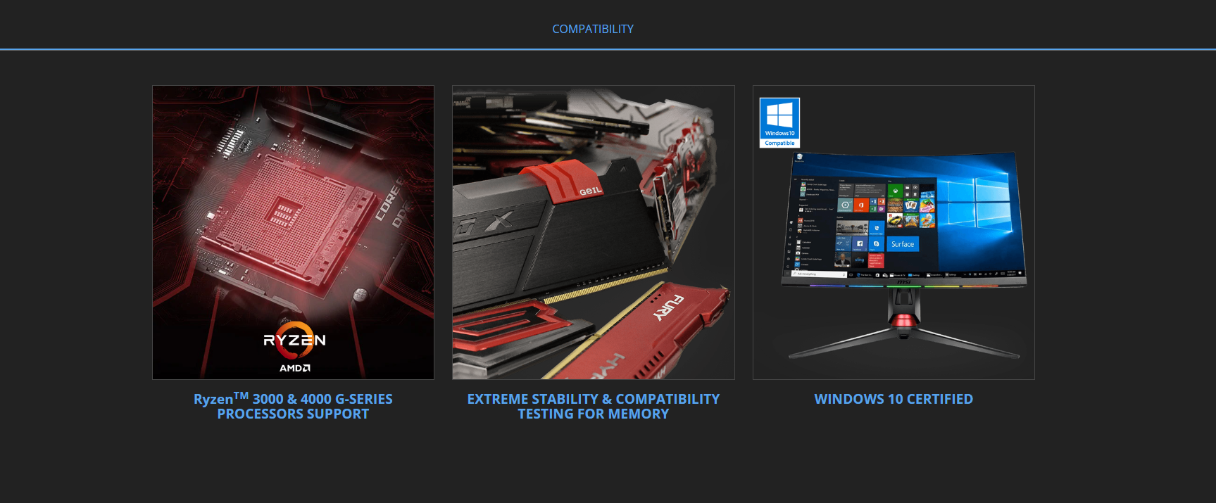Supports AMD Ryzen™ 5000 & 3000 Series desktop processors (not compatible with AMD Ryzen™ 5 3400G & Ryzen™ 3 3200G) and AMD Ryzen™ 4000 G-Series desktop processors