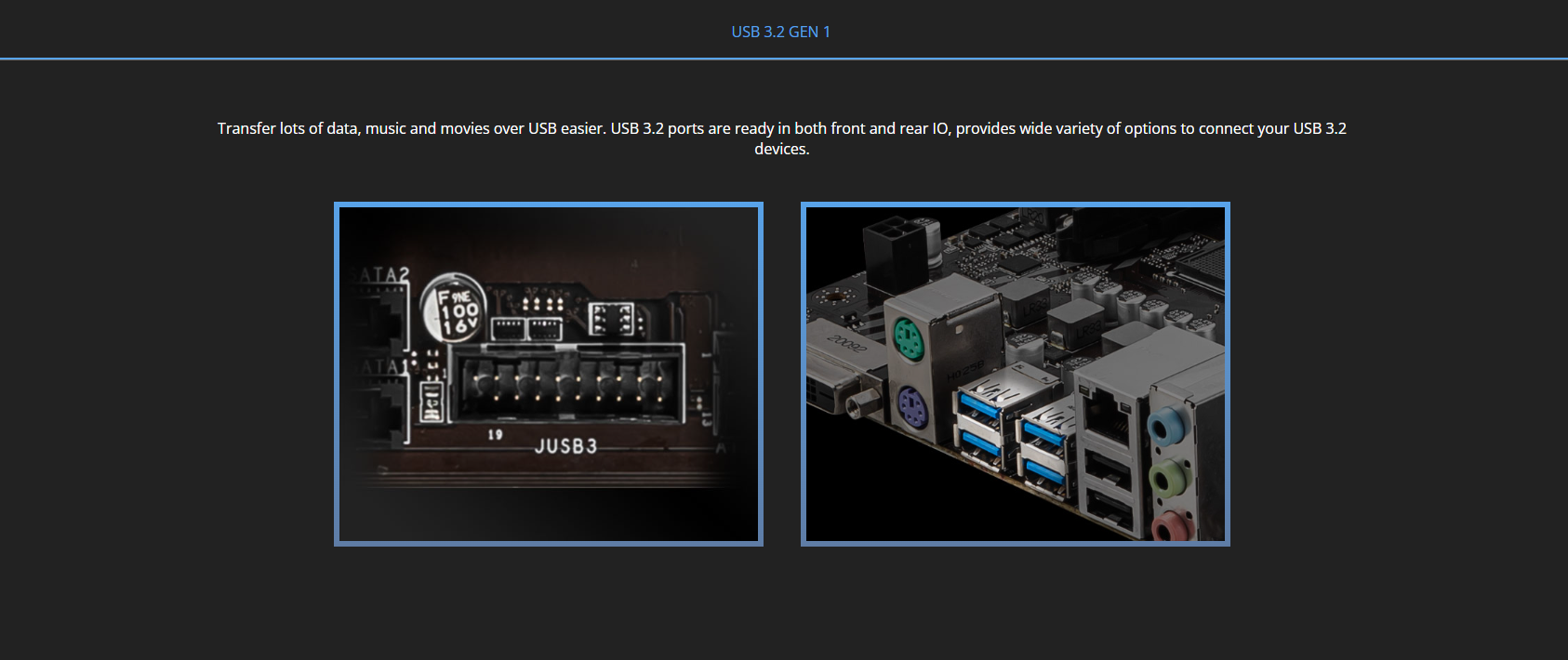 | USB 3.2 PORTS (REAR) | 4(Gen 1, Type A) |