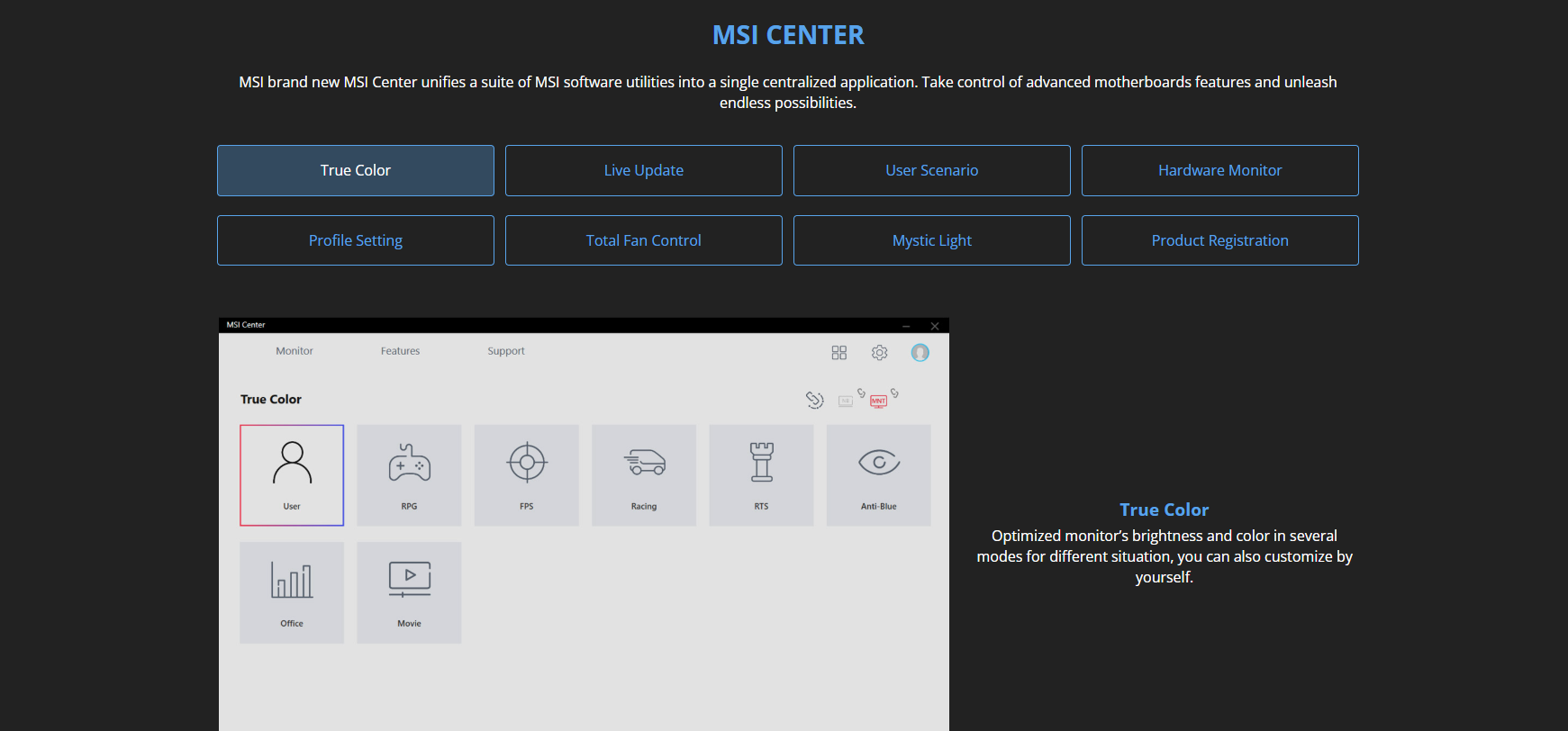 Dragon Center: A brand new software which integrates all MSI exclusive tools with user friendly user interface.