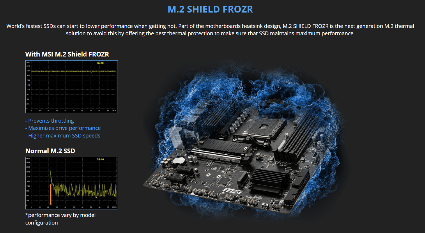 • Premium Thermal Solution: 7W/mK pad, additional choke thermal pad and M.2 Shield Frozr are built for high performance system and non-stop works