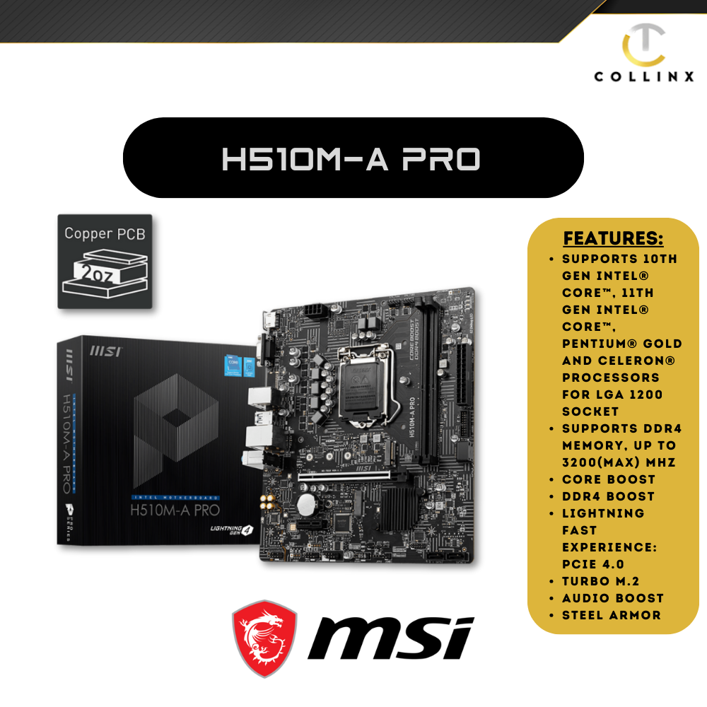 • Supports 10th Gen Intel® Core™, 11th Gen Intel® Core™, Pentium® Gold and Celeron® processors for LGA 1200 socket