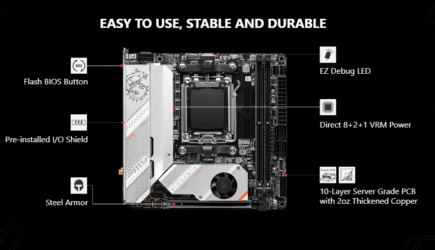 DIY Friendly Design: Flash BIOS Button, Pre-installed I/O Shield, Steel Armor
